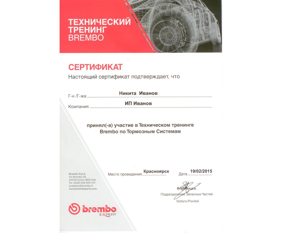 В 2015г. наши сотрудники участвовали в техническом тренинге по тормозным системам Brembo. Особенности производства, применимость, подбор, кодировка и другие важные аспекты
